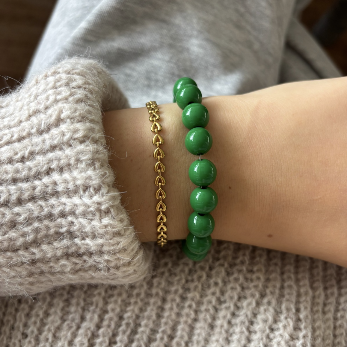 Groen kralen armbandje goud